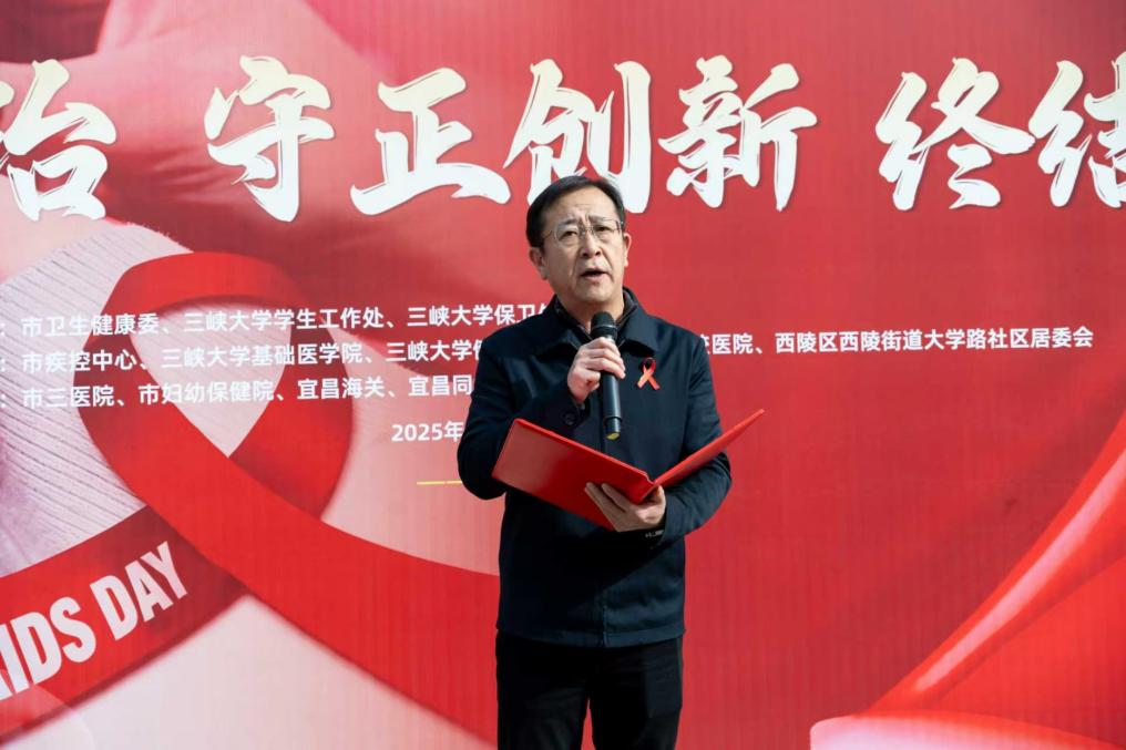 2025年12月1日是第38个“世界艾滋病日”,为广泛传播防艾知识,提升青年学生健康素养,营造全社会参与艾滋病防治工作的良好氛围,宜昌市疾控中心联合三峡大学于11月26日下午在三峡大学求索广场举办“世界艾滋病日”暨高校防艾宣传旗帜接力传递活动。