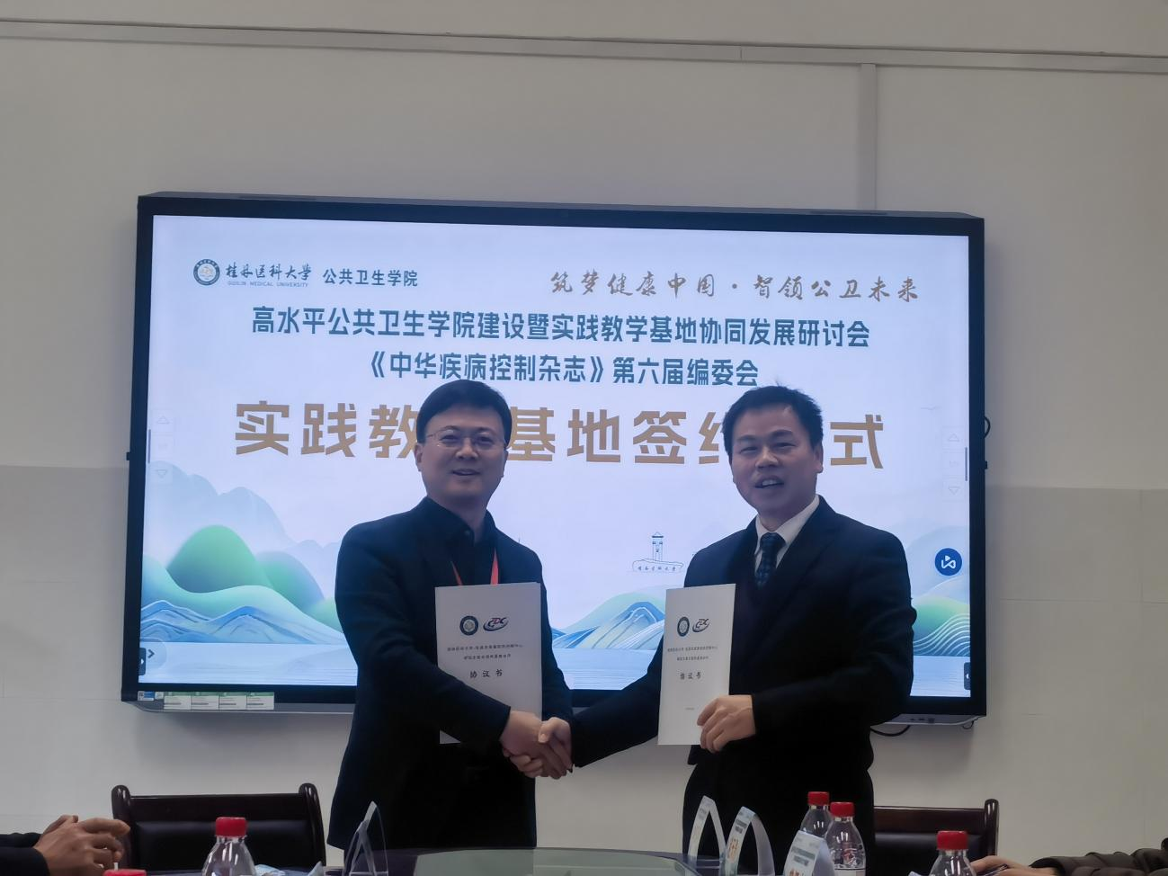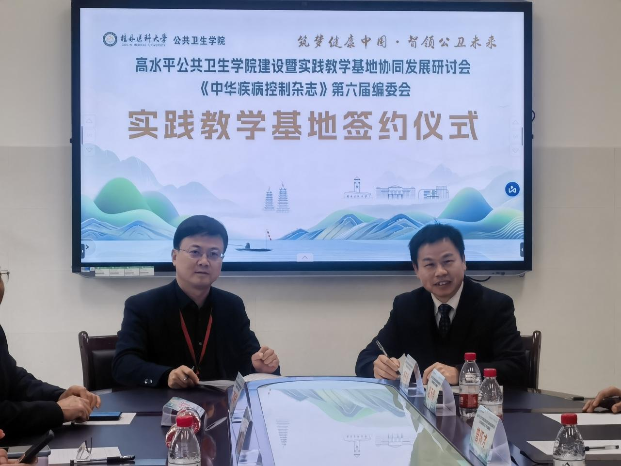 12月13日,宜昌市疾病预防控制中心——桂林医科大学共建研究生联合培养基地签约仪式在桂林医科大学公共卫生学院举行。签约仪式由桂林医科大学公共卫生学院副院长谭超主持,宜昌市疾病预防控制中心党委书记胡华刚、公共卫生学院院长曾怀才出席签约仪式,公共卫生学院教师代表和宜昌市疾病预防控制中心带教老师代表等参加签约仪式。