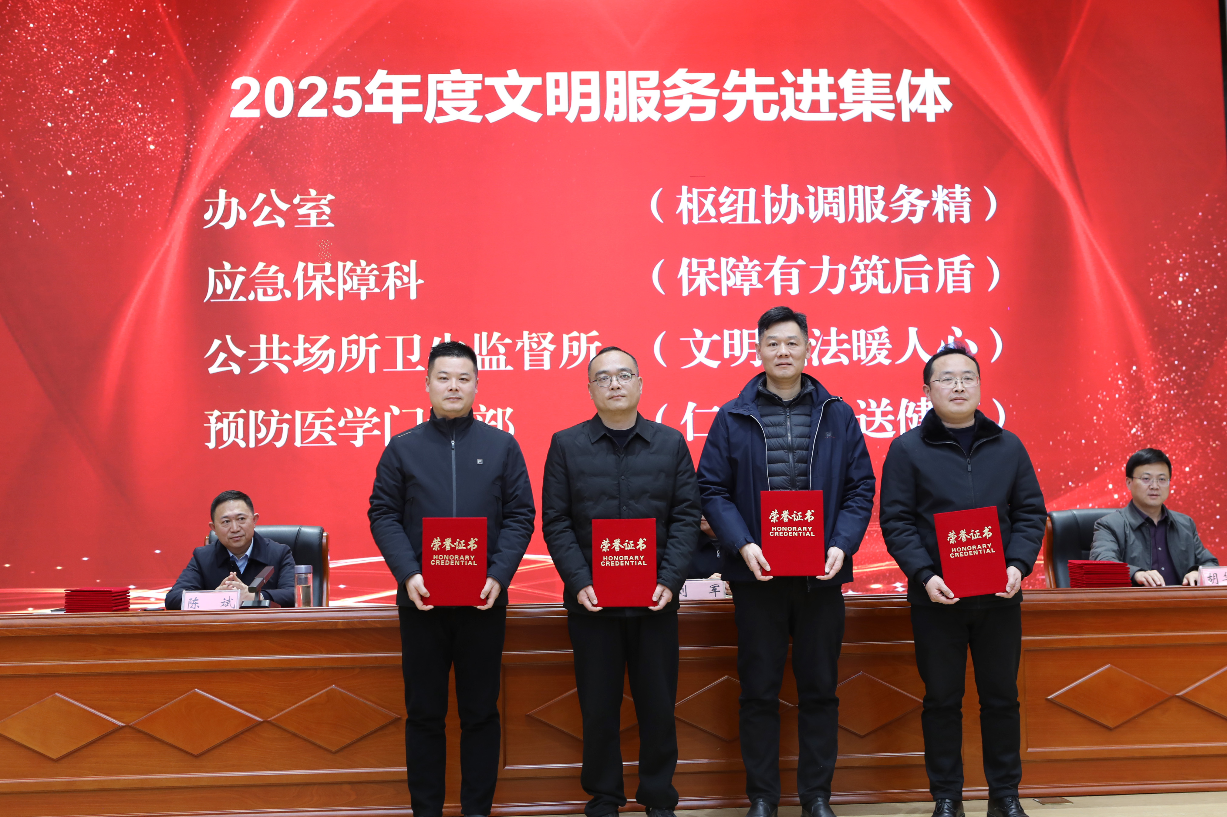 会上,宜昌市疾控中心主任陈斌作中心年度总结报告,系统全面回顾了2025年及“十四五”时期工作成绩,谋划展望了“十五五”发展目标及2026年重点工作。他表示,在市委、市政府和市卫生健康委的坚强领导下,市疾控中心在党的建设、体系改革、公共卫生安全保障、健康服务提质、人才队伍建设等方面取得了显著成效,多项工作走在全省乃至全国前列。他指出,优异成绩的取得是全体干部职工团结拼搏、无私奉献的结果,今后要接续奋斗、锐意进取、扎实工作,为加快建设健康宜昌、保障人民健康、助力“支点建设”作出积极贡献。