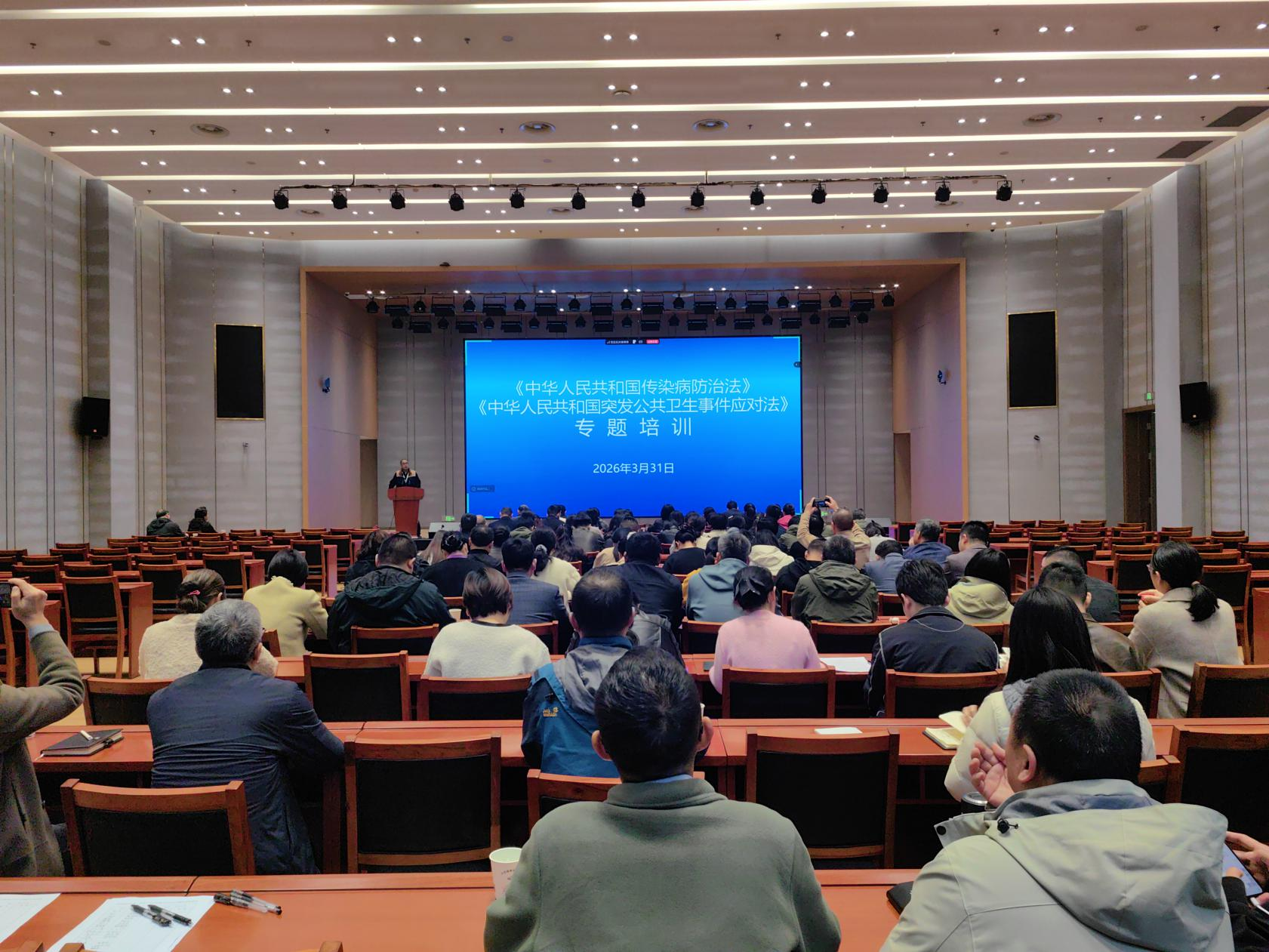 2026年3月31日上午,宜昌市疾病预防控制中心举办了《中华人民共和国传染病防治法》《中华人民共和国突发公共卫生事件应对法》专题培训。市疾控中心全体干部职工现场参会,全市14个县市区疾控中心同步以视频会议形式线上参加。