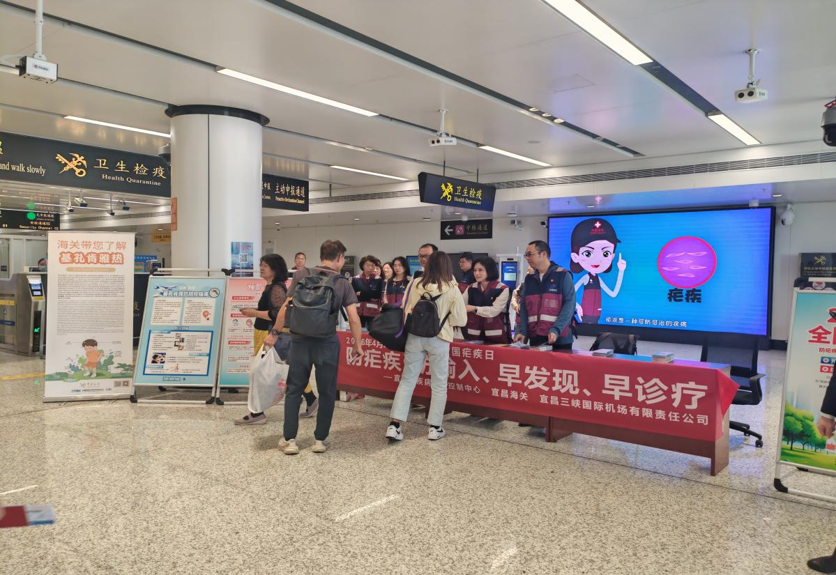 为进一步强化公众对疟疾、基孔肯雅热及登革热的防控意识,普及相关防治知识,压实防控责任,4月24日下午,宜昌市疾控中心联合宜昌海关、宜昌三峡机场、宜昌国际旅行卫生保健中心,在三峡机场国际厅针对性开展疟疾、登革热防治知识科普宣传活动,重点面向前往东南亚国家的出入境人员普及防控知识。活动现场,工作人员通过循环播放宣传视频、展示科普展板、发放宣传折页、现场答疑解惑等多种形式,通俗易懂地向出入境人员讲解疟疾、登革热的感染症状、传播途径、防控要点及应急处置方法,引导大家增强自我防护意识,主动做好个人防护。